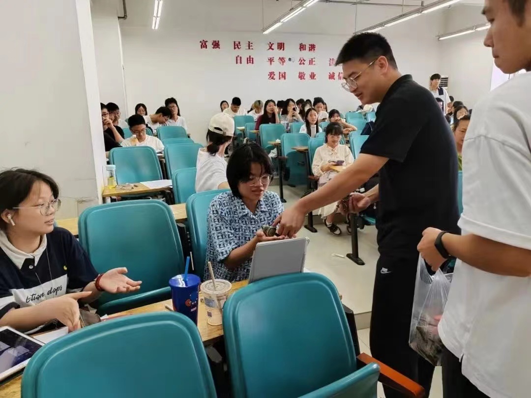 本次系列活动分为两个部分。第一部分由院系各年级辅导员为所带年级学生开展专题活动。在活动上,各年级辅导员首先就端午节的由来和节日传统习俗展开讲述。他们强调,广大青年大学生要饱含对先辈的敬意,并用行动传承中华优秀传统文化。接着,辅导员老师们寄语大家要不断加强个人学习,树立远大理想,坚定四个自信,用实际行动助力中华民族伟大复兴!最后,辅导员们向同学们分发粽子,传递节日温暖。