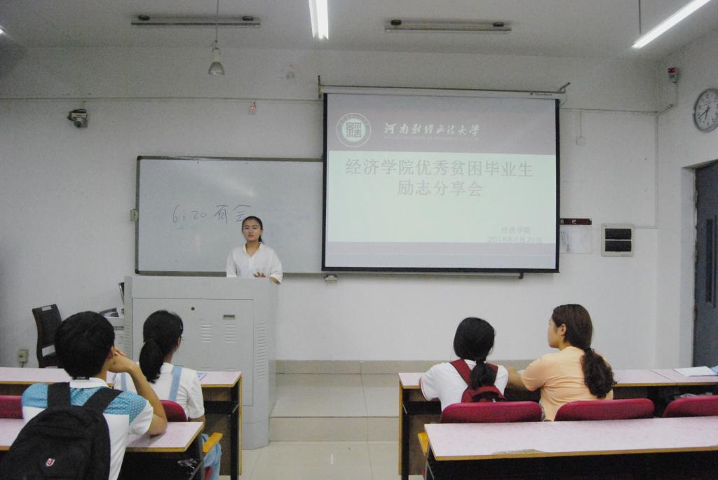 6月20日晚6:30,我院在第一教学楼204召开了“励志成才分享会”,助力家庭经济困难学生成长成才。14级优秀贫困毕业生代表、17级全体贫困生参加了此次分享会。