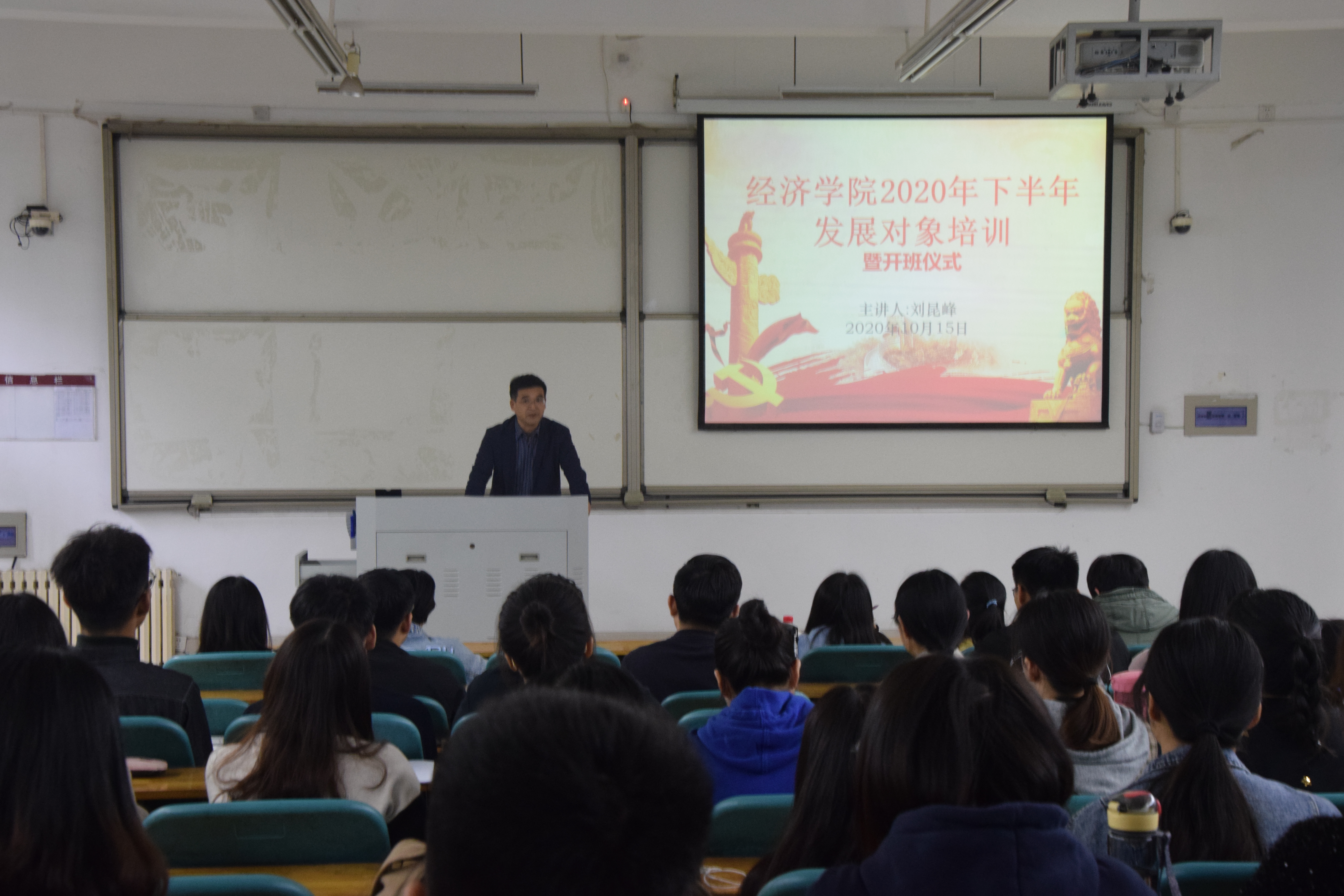 为教育引导入党发展对象端正入党动机,明确努力方向,以实际行动争取早日加入党组织,开云kaiyun体育于2020年10月15日12点40分在教科楼102开展了本次发展对象第一次培训暨开班仪式。党委书记刘昆峰担任主讲人。