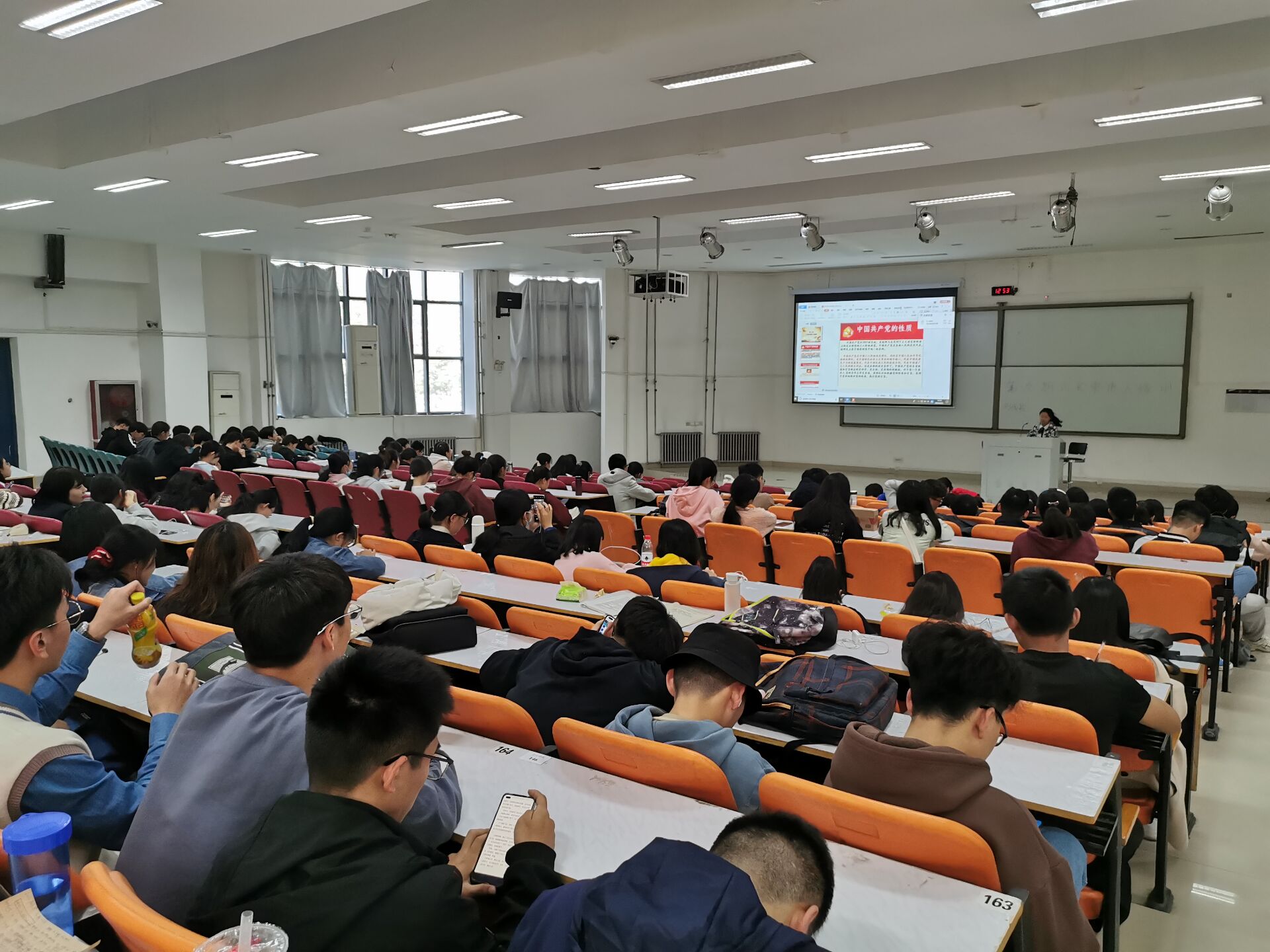 魏家鑫通过播放幻灯片的形式,向同学们详细地介绍了中国共产党的性质、中国共产党的指导思想等内容,进一步增强了入党申请人对党的基本知识和党的方针政策的了解,树立跟党走的决心。此外,她还介绍了入党的条件以及流程,同时希望同学们积极加入到党的队伍中来。