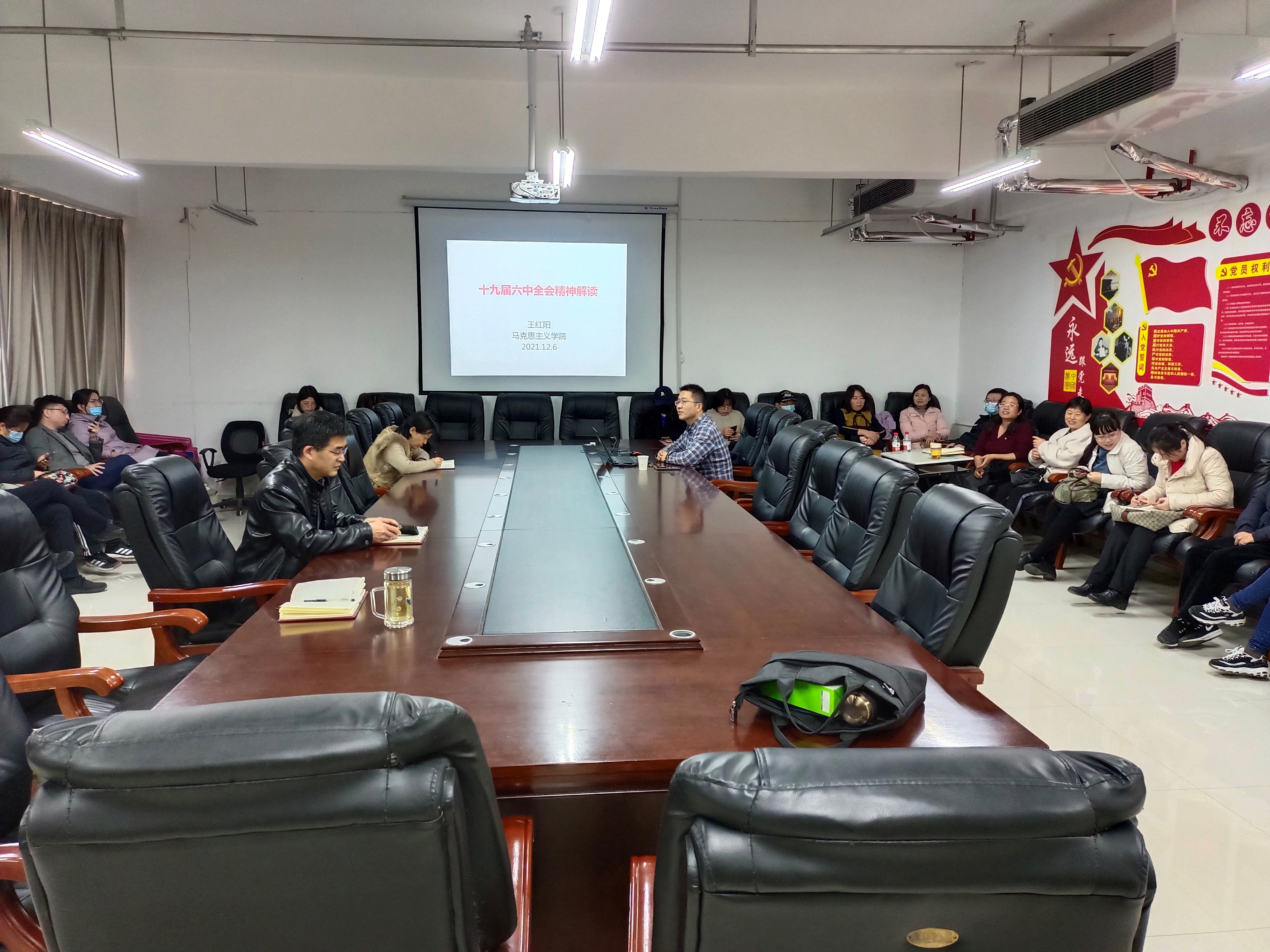 12月6日下午开云kaiyun体育召开教职工大会,邀请马克思主义学院王红阳博士讲解党的十九届六中全会精神,全体教工参加学习。