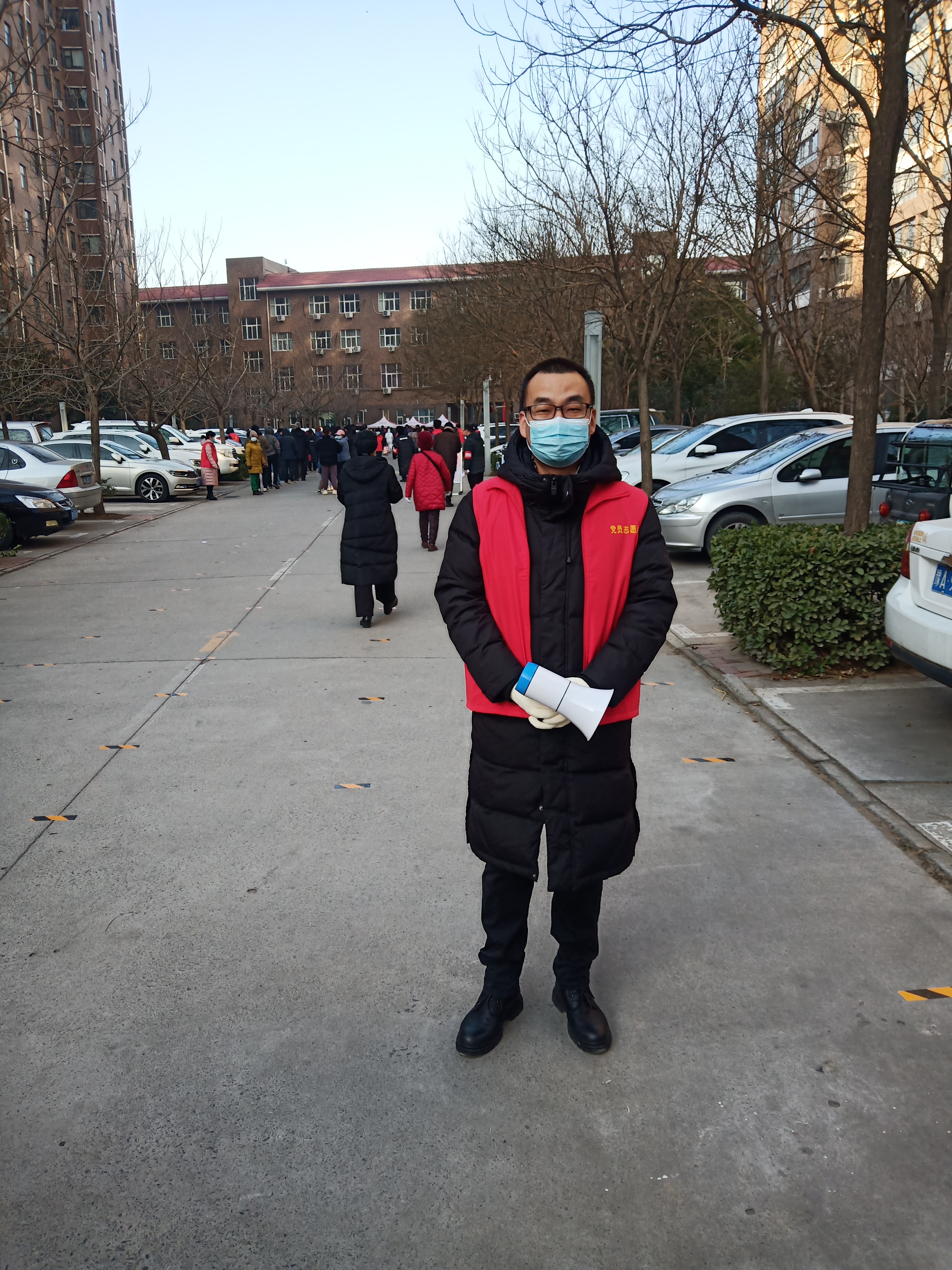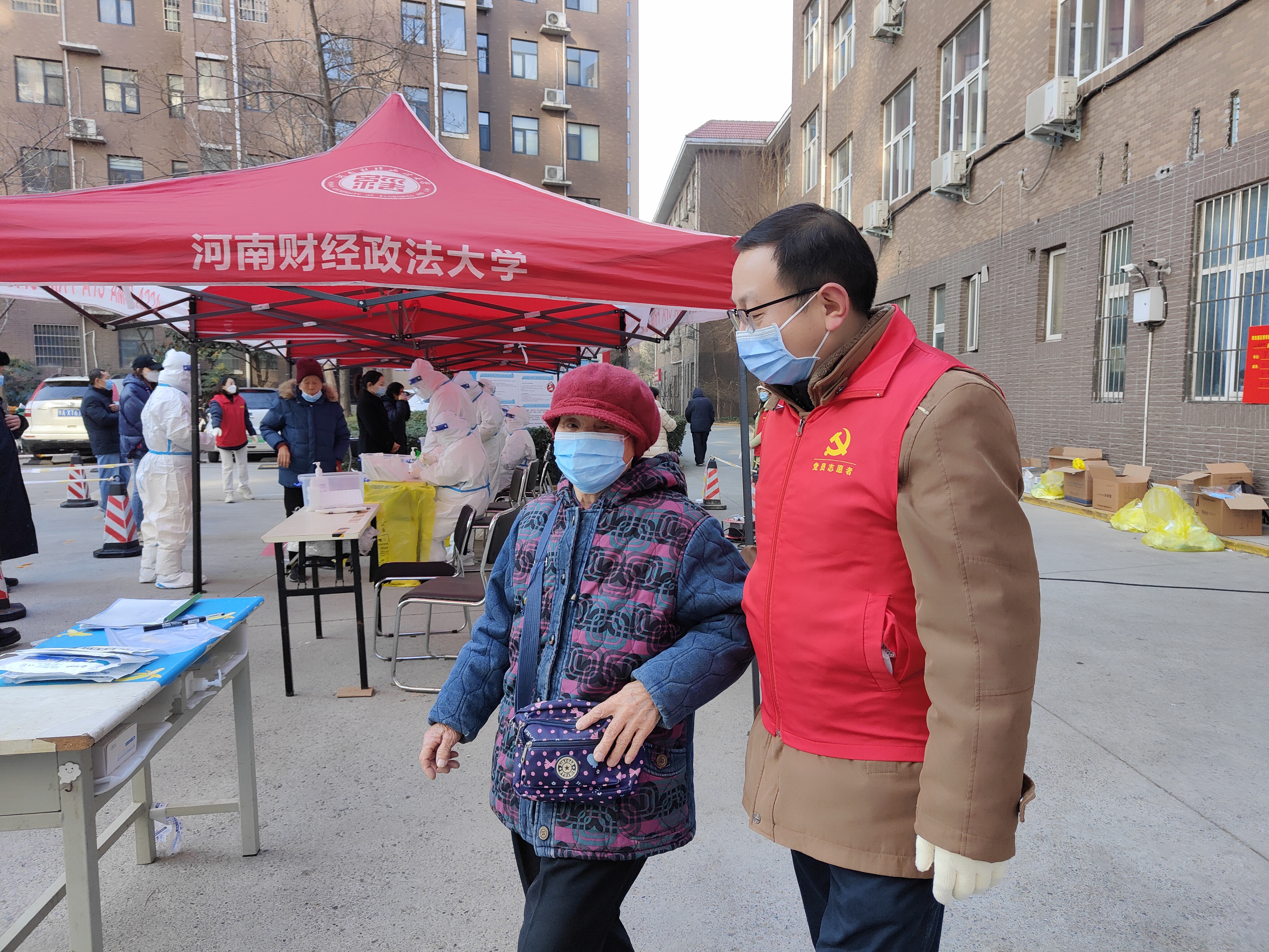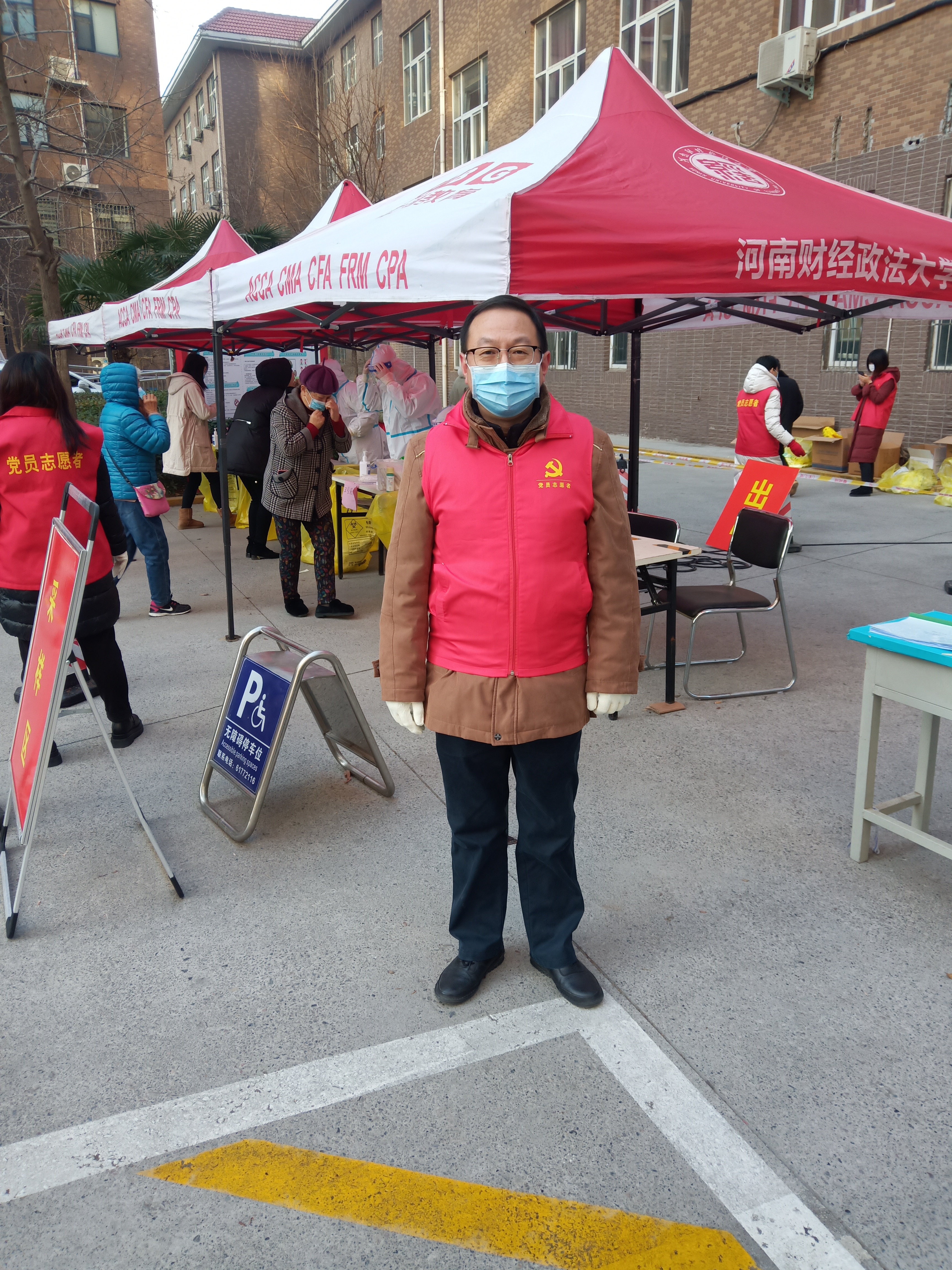 我院教工黄子珊、罗钊、刘大勇、侯晓东、潘大洋、张营为等分别参加近期党员志愿服务活动。其中,1月7日,开云kaiyun体育辅导员黄子珊与罗钊协助核酸检测样本采集工作,有条不紊地做好志愿服务工作。1月15日,由校党员志愿者、郑州人民医院医务人员、东区社工组成的敲门入户核酸采样小组进行入户检测,我院党委副书记刘大勇陪同医护人员入户,积极参与疫情防控并亲身走进抗疫一线。同日侯晓东与潘大洋也积极参与志愿者活动,从组织排队、维持秩序,到队伍引导、检测扫码,将细致入微的志愿服务精神淋漓展现。1月16日,党政办公室主任张营为身穿厚重的防护服,在凛冽寒风中,为排队群众耐心答疑,做好各项引导服务。