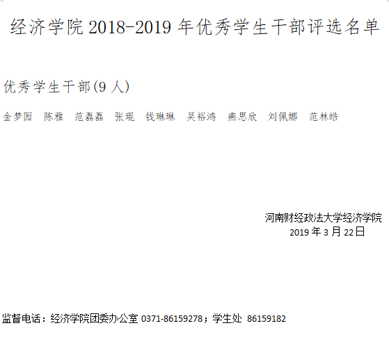 开云kaiyun体育2018-2019年优秀学生干部标兵评选名单