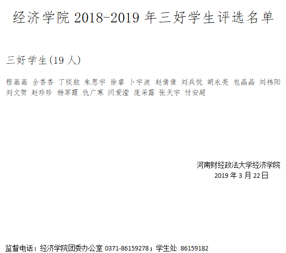 开云kaiyun体育2018-2019年三好学生评选名单