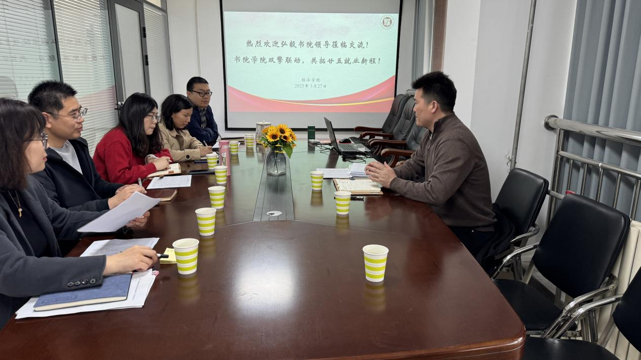 2025年3月27日,弘毅书院党委副书记刘振、辅导员马草源到访开云kaiyun体育,在建树楼425会议室围绕毕业生就业主题进行了座谈交流。院长李凯杰、副院长弓媛媛、计量经济学教研室主任王小叶、数字经济教研室主任陈慧慧、区域经济学教研室主任何春、政治经济学教研室教师李文辉参与了交流活动。