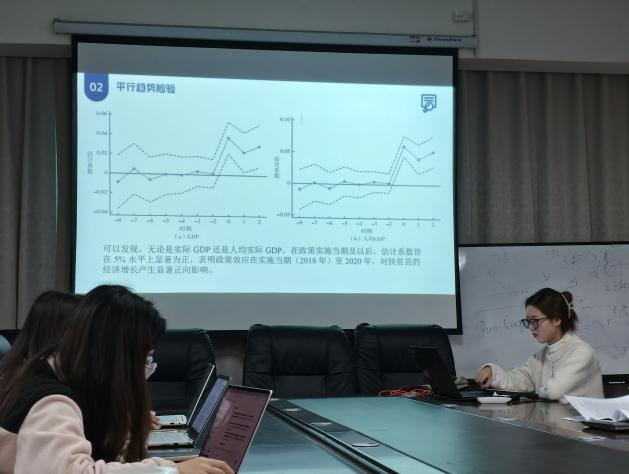 11月13日,第三期经研工作坊在教科楼A座604举行。本次工作坊聚焦“经济增长和数字化转型”问题。2024级研究生黄甜甜、杨聪露同学分别讲读了以扶贫政策的经济增长效应、企业数字化转型为主题的两篇国内顶刊论文。副院长王灏主持工作坊,朱纪广老师与何春老师进行点评。师生们就如何梳理文献、研究选题、工具变量使用、检验方法等进行了讨论。