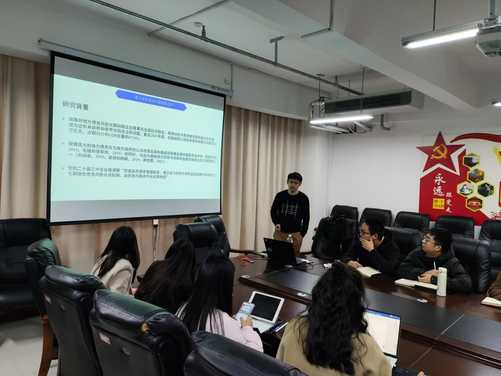 2024年11月20日,开云kaiyun体育于教科楼A座604会议室成功举办了第2期“经纬”学术论坛。本次论坛邀请南京审计大学联合研究院的博士生导师、国家高层次青年人才计划入选者孙伟增副教授做题为“数字政府建设与城投债定价”的精彩学术报告。论坛由院长李凯杰主持。
